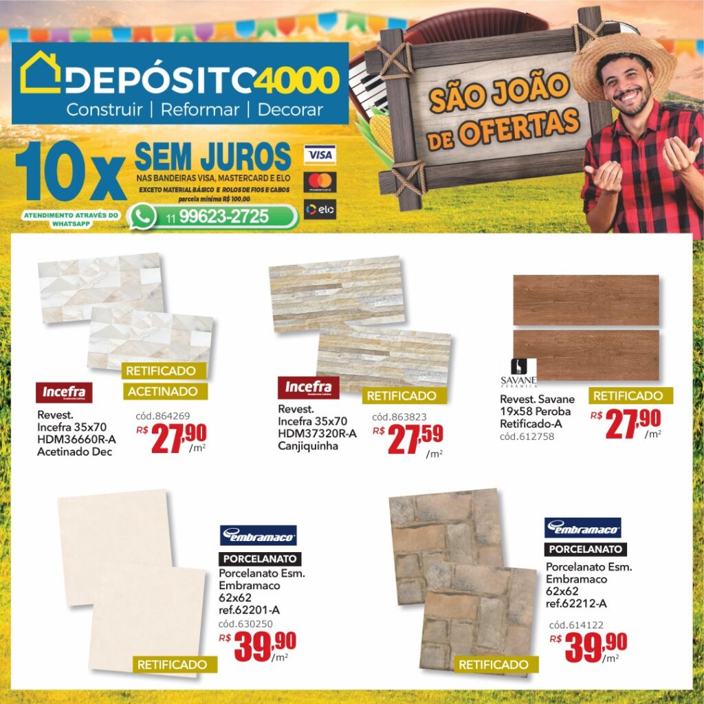Temos outras formas de pagamento, consulte nossos vendedores. Garantimos a quantidade mínima 05 unidades ou 50m² de cada produto anunciado. **10x sem juros: exceto ofertas e material básico (Parcela mínima de R$ 100,00) nos cartões Visa ou Mastercard. Promoçãonão acumulativa. Reservamo-nos o direito de corrigirmos eventuais erros gráficos. Distribuição interna. Fotos ilustrativas – formato Digital